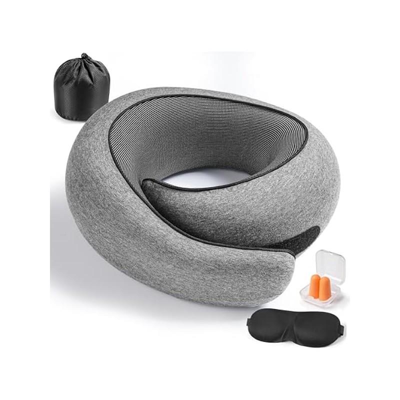 Travel Pillow,Travel Neck Pillow, 360°Memory Foam Neck Pillow Airplane, Travel Pillows for Airplanes, Airplane Pillow, Soft Airplane Neck Pillow Stowable U-Shaped Pillow (Grey)
