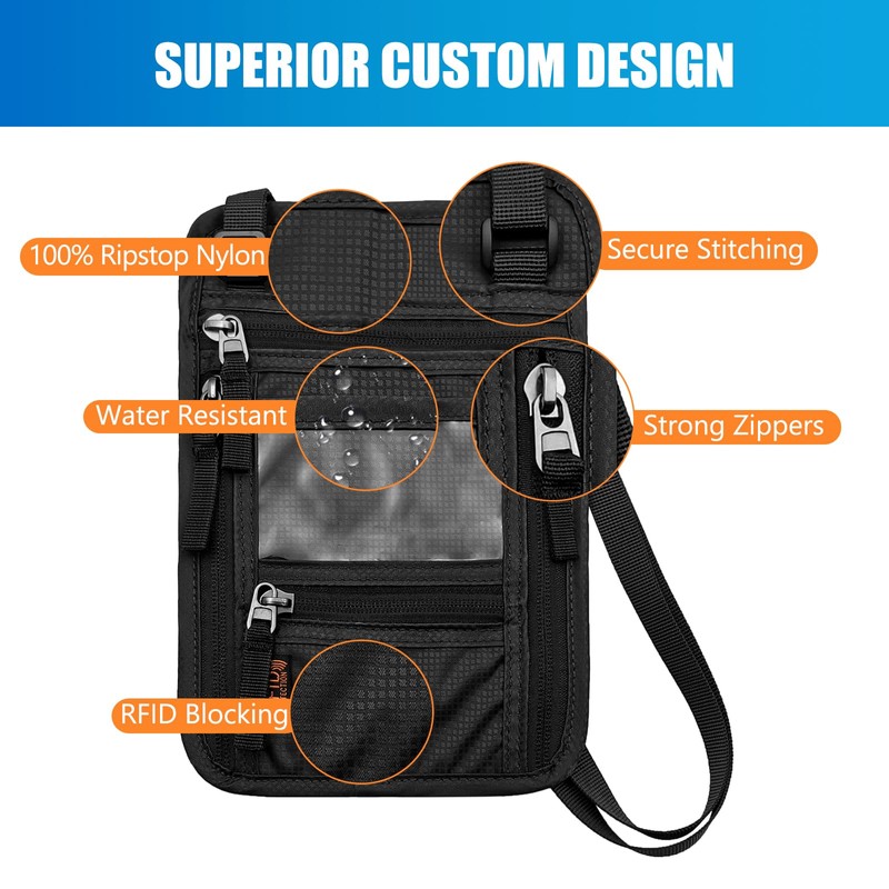 - High Quality&Classical Design- This travel wallet is made of premium fabric, which is durable and lightweight. Exquisite stitched seams will last a good long time. The nylon mesh on the back is also soft and helps keep the body cool while wearing this neck pouch.