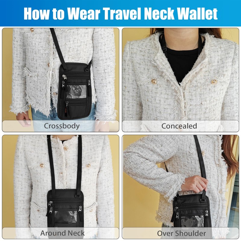 - Fasion and Accessibility – A stylish, easy-to-use design, that’s comfortable and lightweight. Wear beneath clothing, around the neck or securely fastened to belt. Our Neck Wallet makes it super easy to add or remove items, including passports & large smartphones, for quick travel access.