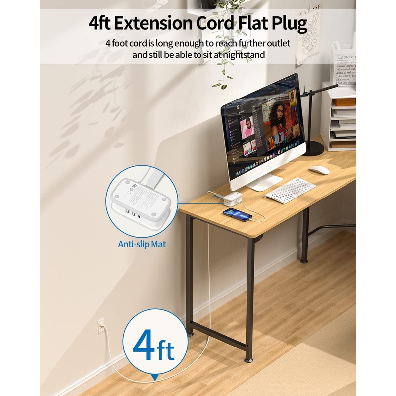 • 【Reliable Safety Travel Accessories】: The small power strip is FCC & RoHS approved and made of fire-resistant pc shell, making it fireproof up to 1382 F. Portable power strip for travel with 4 anti-slip rubbers bottom, the 4 FT short extension cord can be stable on your nightstand without slipping off. The small power strip works great on your nightstand , home, office, and college dorm room.