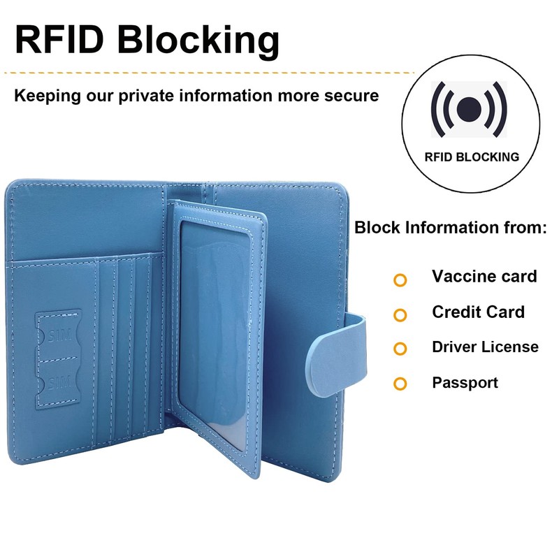 - RFID Security: our passport holders are designed with rfid, which can prevent reading the card information in the wallet through the device, and to guard your privacy and personal information, you can use them safely and comfortably.