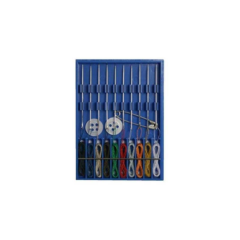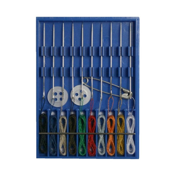 - Travel sewing kit in a box, contains 10 sewing needles with threaded threads, 2 shirt or blouse heads, 1 safety pin