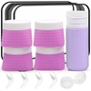- Travel Toiletry Accessories: This toiletry containers travel kit includes 4pcs 1.7oz/50ml travel size silicone jars, 1 pc 2oz/60ml travel toiletry bottles, 1 spare leak-proof travel bottles lid, 1 counts facial brush, 4 cream scoops. 2 different no-drip valve lids to replace.