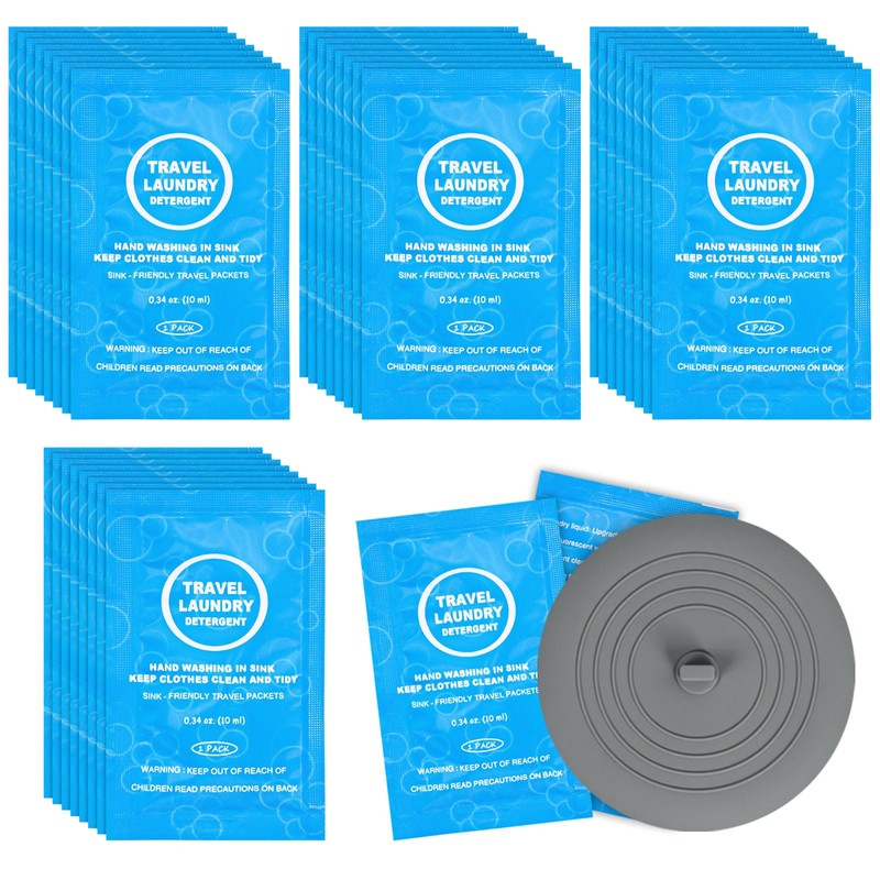 - Package Content:You will receive 30 packs of travel size laundry detergent and 1pack detergent powder sink, each pack is individually wrapped, the bag is easy to tear, very convenient, ideal travel size disposable essentials for guests, family use, vacation rentals