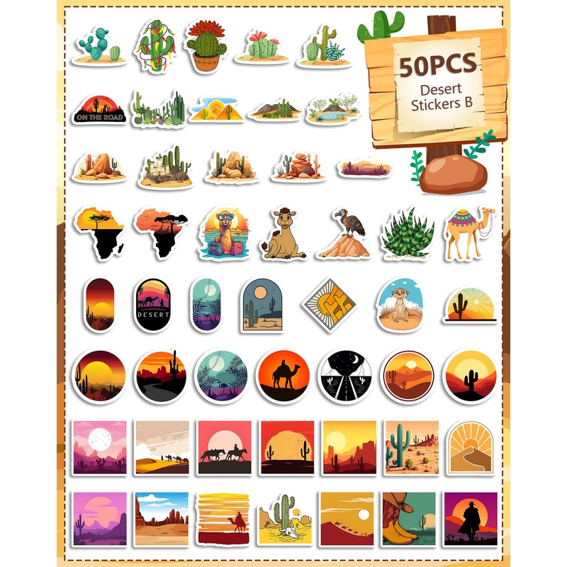 - Vinyl Stickers: Desert Stickers are made of high quality vinyl material that is waterproof and sun resistant. The high-resolution patterns of our waterproof stickers do not fade easily. Each aesthetic sticker is about 2-3 inches