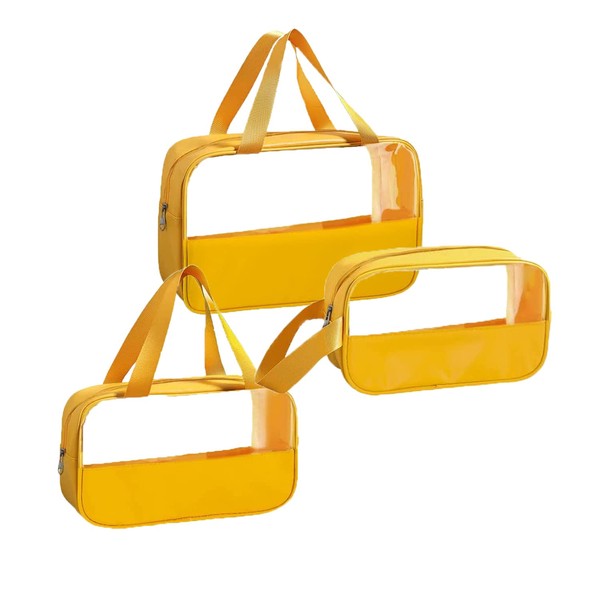 Travel Toiletry Bags, 3 Different Size Travel Makeup Bag Waterproof Transparent Cosmetic Bag Travel Organizer Zippered Carry on Pouch for Vacation, Bathroom, Airplane (Yellow)