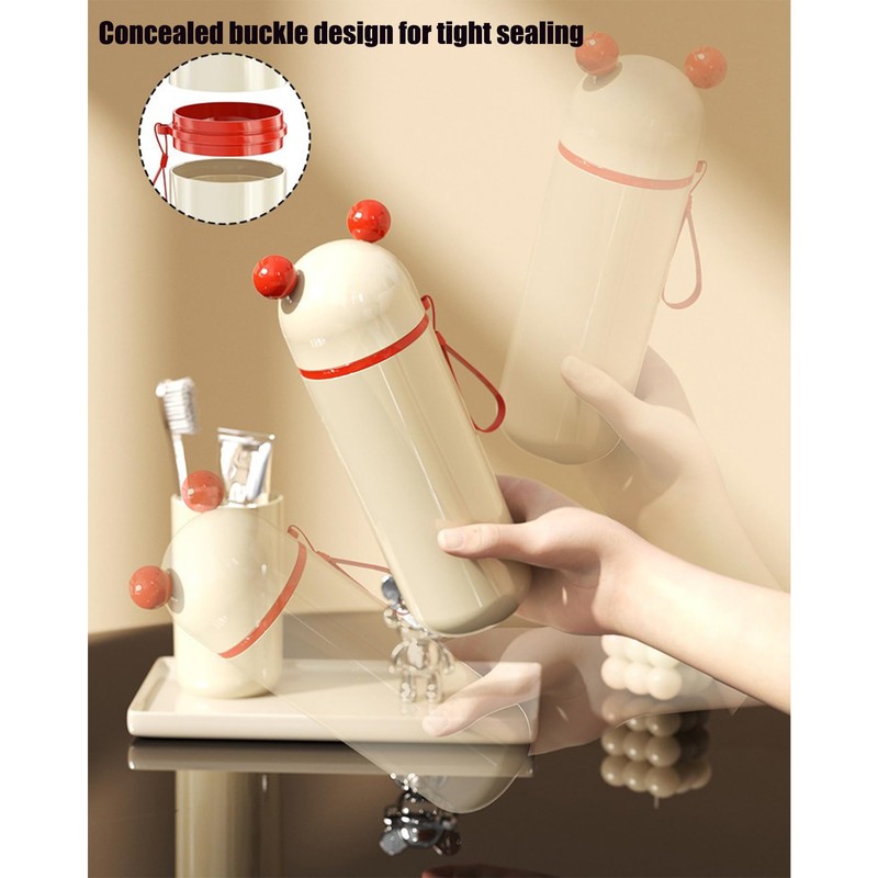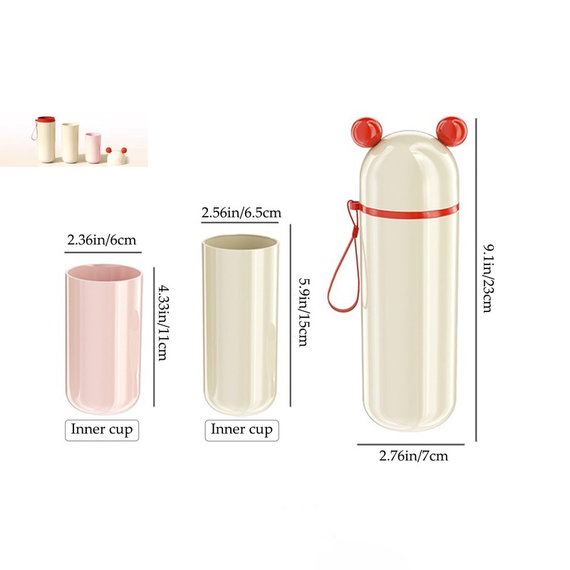 - Design: The cute travel toothbrush cup box is a four-in-one combination with two inner cups and a lid that can be used to store toothbrushes, toothpaste, combs and disposable towels. Say goodbye to the trouble of scattered items and easily organize travel necessities to make the journey neater and more efficient