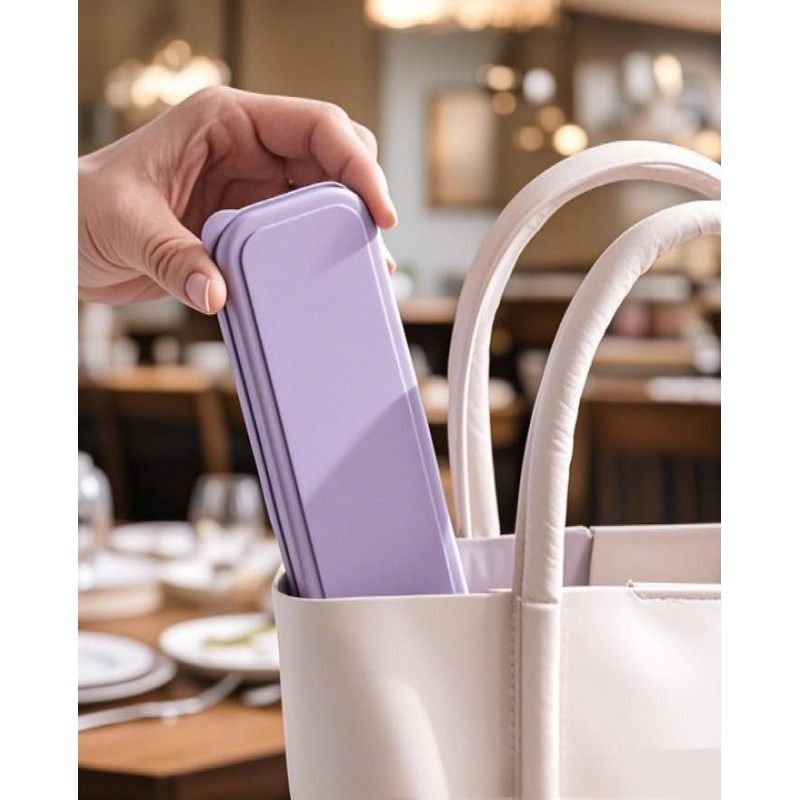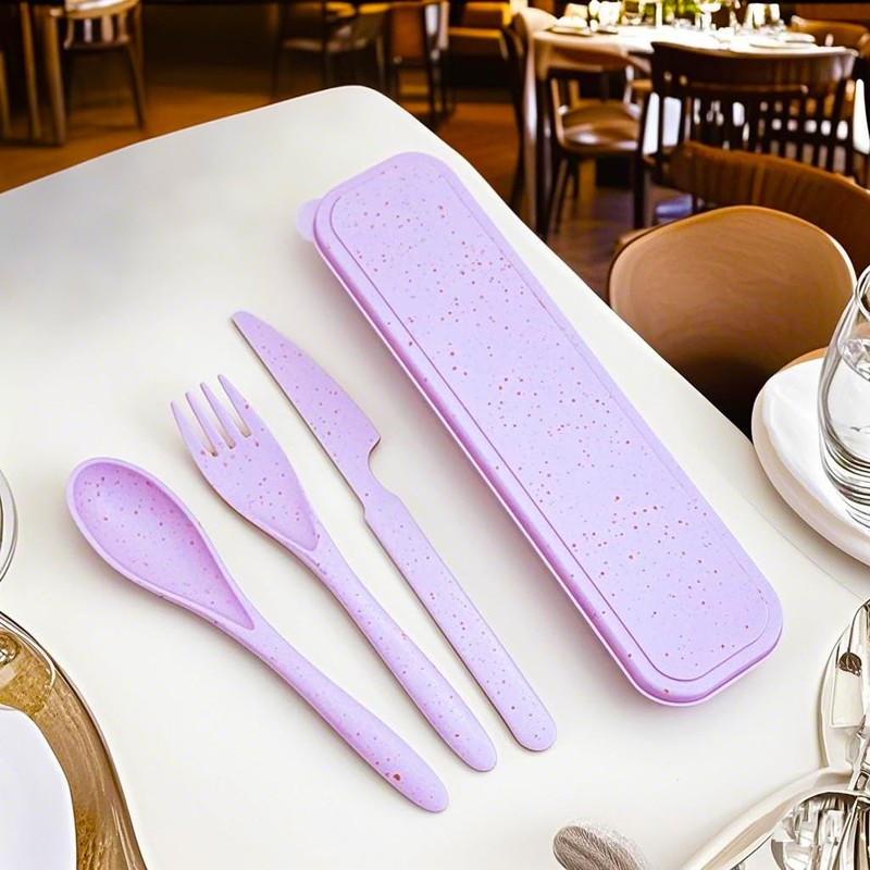 Travel Utensils-Reusable Travel Utensils with Case, Portable Camping Cutlery Set for Office Lunch School Picnic or Daily Use (Purple,Purple)