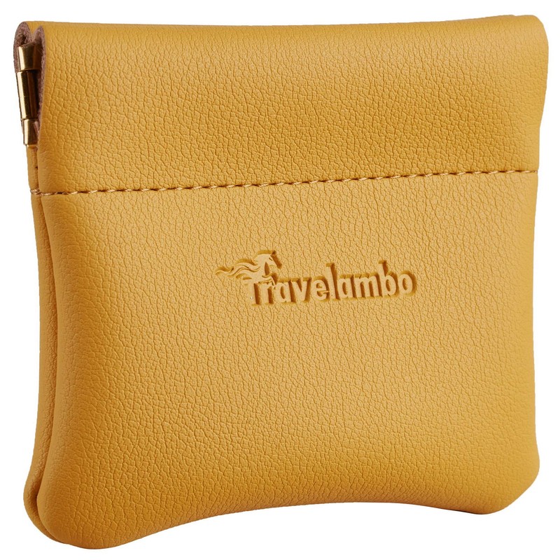 Travelambo Leather Squeeze Coin Purse Pouch Change Holder For Men & Women (Access Yellow)