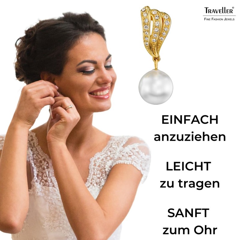 Traveller Clip-On Earrings with Pearl Crystals Gold-Plated or Platinum Plated, Crystal