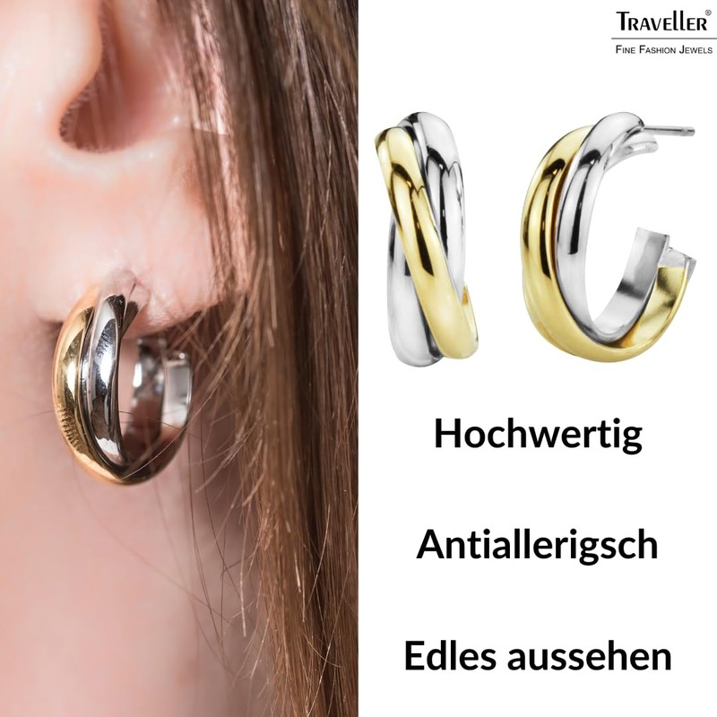 - Stainless steel bicolour gold plated, diameter: 19 mm, width: 6 mm, weight: only 3 grams/piece