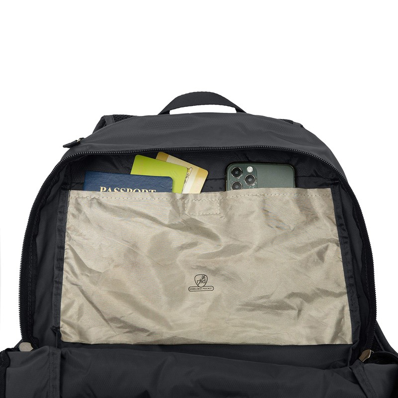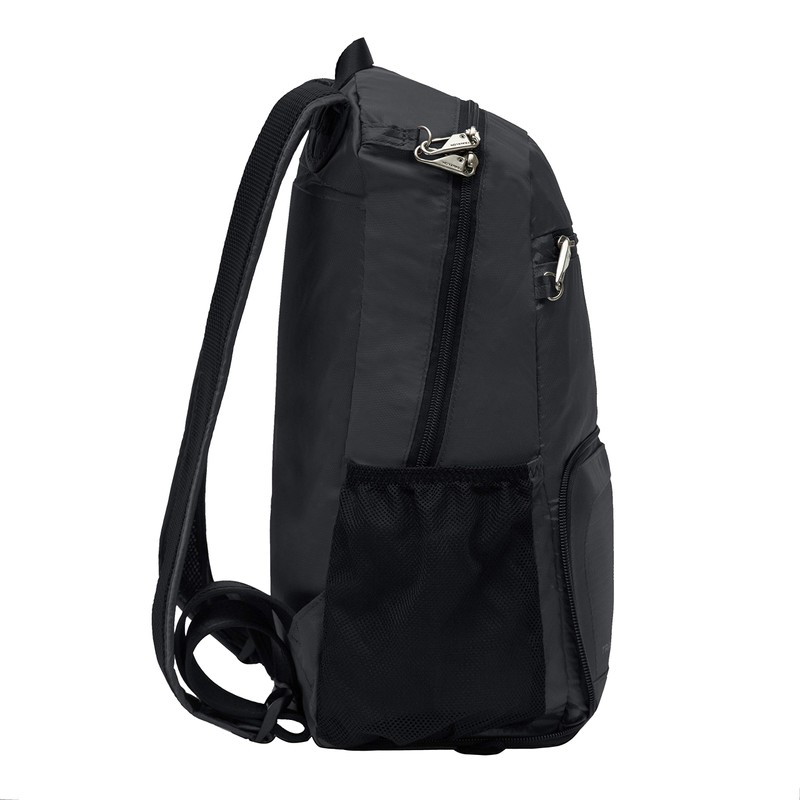 Travelon Anti-theft Packable Backpack, Black, Open 10.5 x 17 x 6 Packed 10.5 x 6 x 1