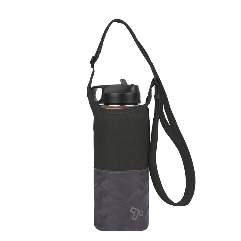 Travelon Unisex Packable Water Bottle Tote Sling Tote Bag, black/grey