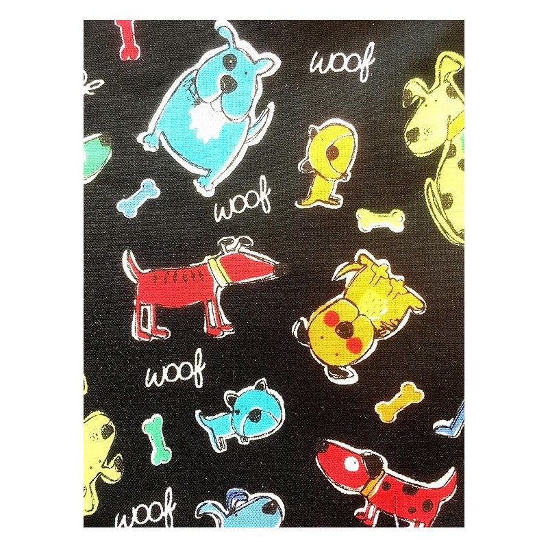 - Multicoloured Dogs and Bones on a black background with black drawstring