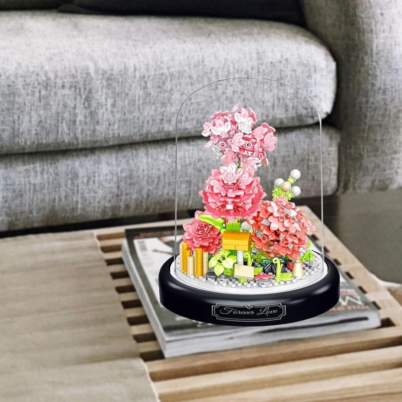 - Bouquet for office and home decoration: artificial bonsai tree that never withers, with transparent base and cover, easy to maintain. The flower building blocks have different shapes and colours. You can use it to create a botanical collectible project and warm up the decoration of your home or office so you can enjoy the beautiful bouquet and have a good mood after work and life.