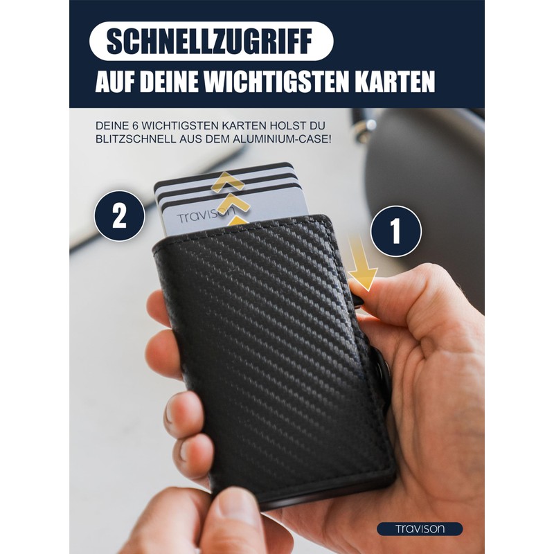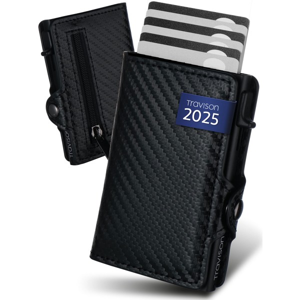 Travison® Smart Wallet with Coin Compartment and Note Compartment - Card Case with Coin Compartment and Quick Access - RFID Protection - Men's Wallet Small - Credit Card Holder - Wallet Mini, carbon,