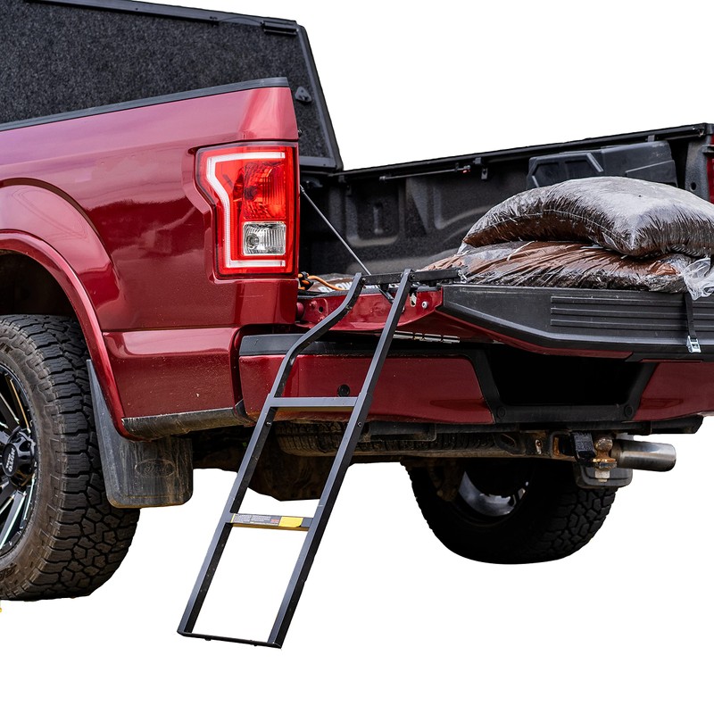 - Heavy-duty construction ensures exceptional durability, giving you peace of mind knowing that your ladder can handle heavy use. Folds neatly against the tailgate and stays out of the way of your valuable cargo space when not in use, maximizing the space in your truck bed.