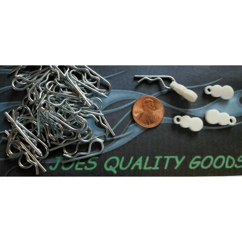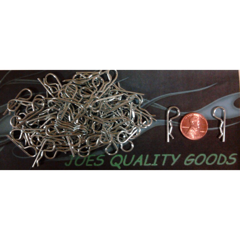 100 1/10 SCALE STANDARD SIZE RC BODY CLIPS THEY FIT NICE AND SECURE AND ARE 1 INCH LONG AND ZINC PLATED PROUDLY MADE IN THE USA