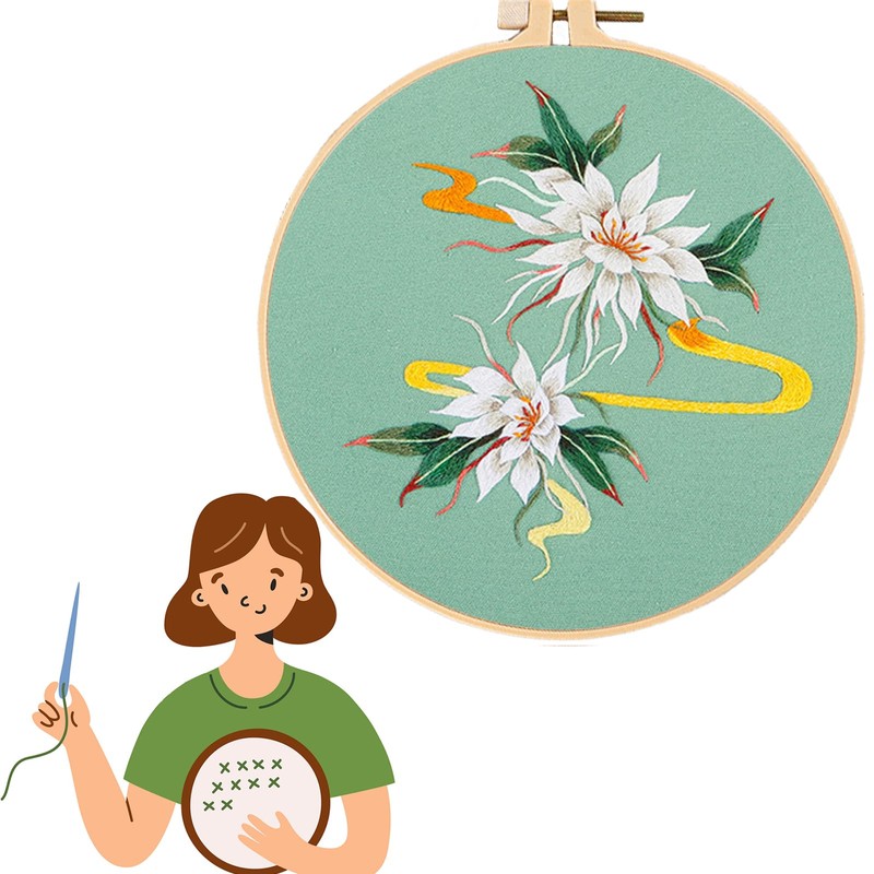 - embroidery kit for beginners adults Exquisite Ornament - Beginner Embroidery Kit, After completing the embroidery work, you can frame the embroidery pattern in the embroidery frame and hang it in the living room or bedroom as interior decoration, or sew it on the canvas bag or pillow.