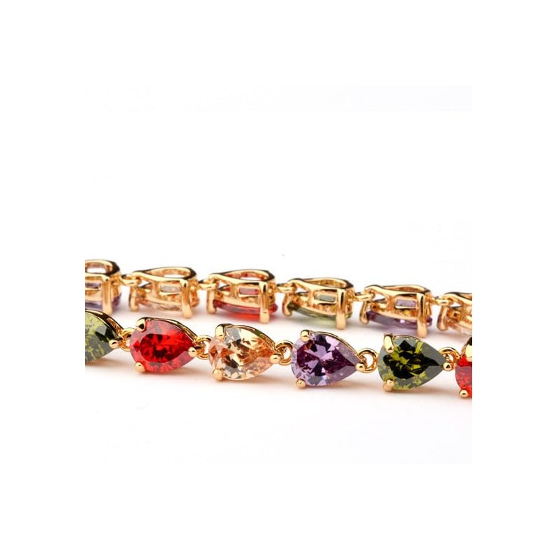 Treasure Bay Elegant Statement Multicolour Teadrop CZ Crystal Bracelet, Rose Gold Plated Tennis Bracelet for Women, 17cm and 19cm, Luxury Jewellery Gift (19 Cm)