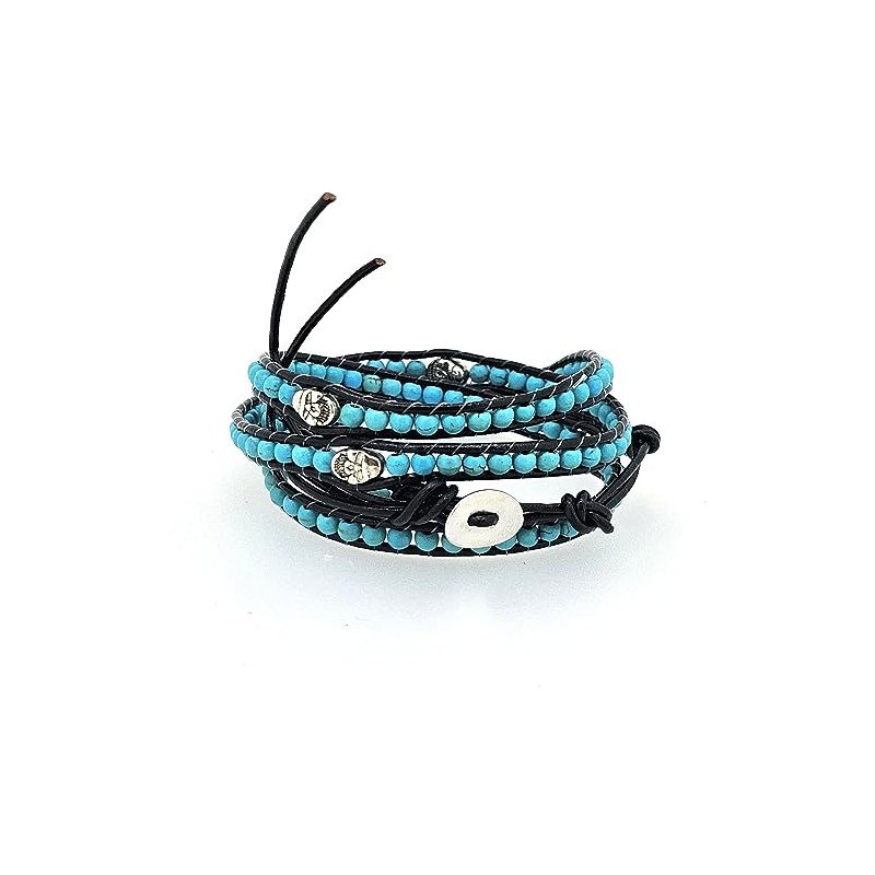 Treasure Bay Layered Bead Bracelet, Bohemian Style Leather Crystal Beads Bracelet Multilayer Wrap Bracelet for Women and Girls (Rurquoise with skulls)