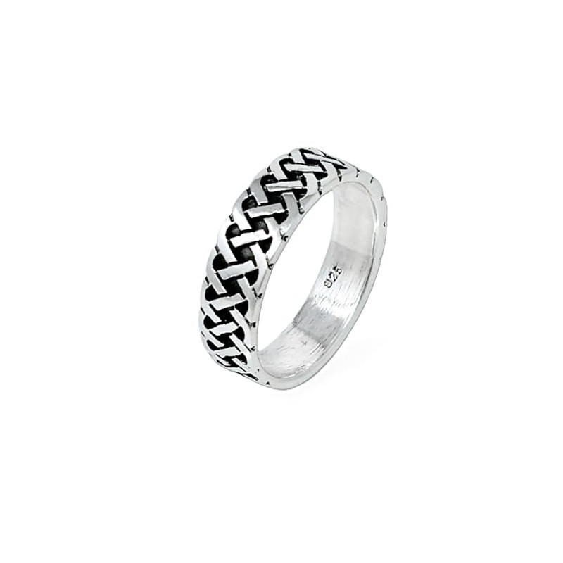 Treasure Bay Men's Silver Ring - 925 Sterling Silver Celtic Gridded Ring For Men Size P R T W Y Z (R)