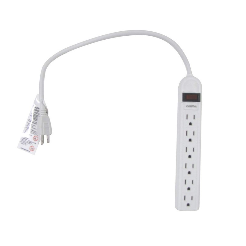 • Power strip measures 13" long with a 1 1/2 ft. cord and includes 6 outlets