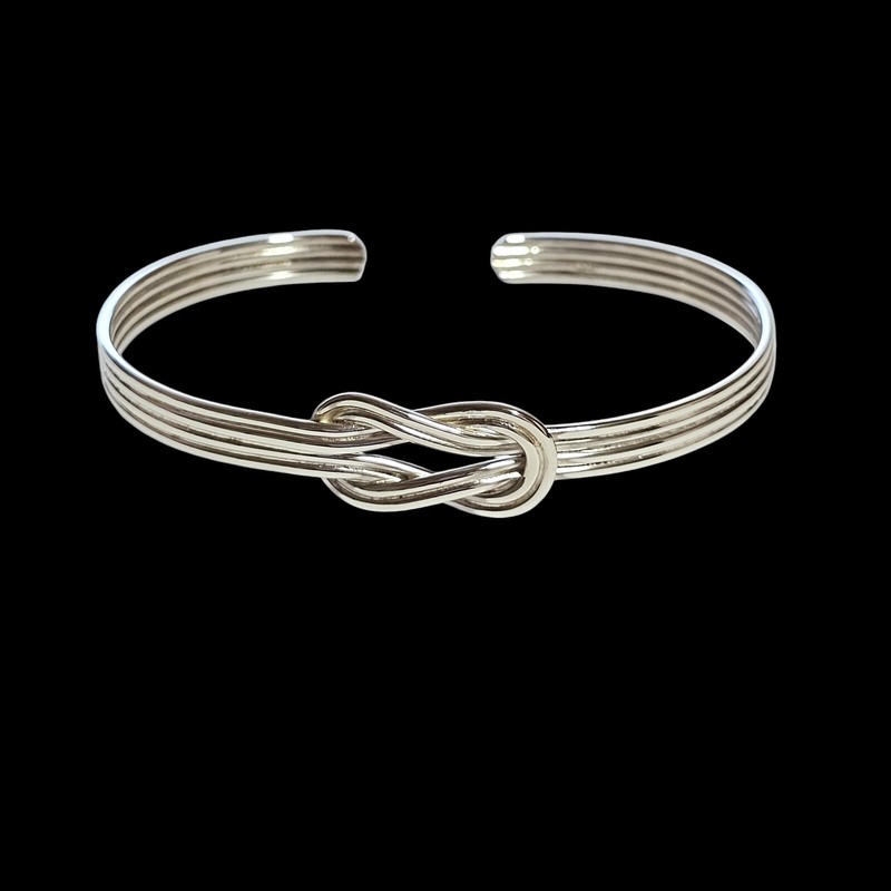 - 925 Sterling Silver Knot Bangle – Handmade open cuff bracelet featuring a symbolic infinity knot design, ideal for women and girls.