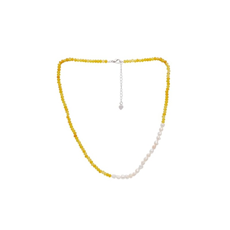 TreasureBay Handmade Womens Girls Beaded Necklace Choker - Natural Gemstones and Freshwater Pearl Necklace (Yellow)
