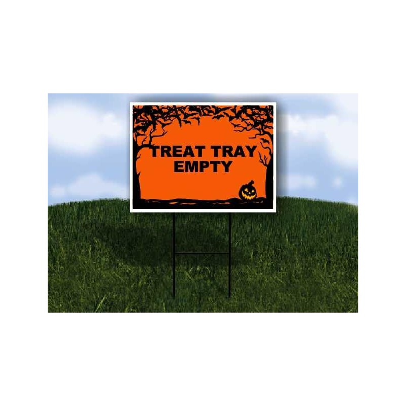 TREAT TRAY EMPTY Halloween Bats and Jack O Lantern 1 Double Sided 18x24 in Yard Road Sign w/stand