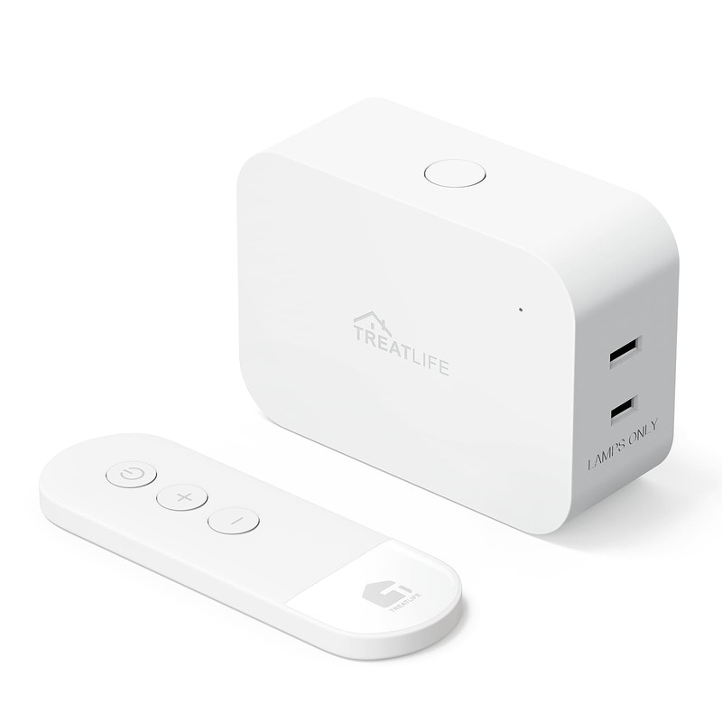 TREATLIFE 2 in 1 Dimmer Plug with Remote, No Smart Features, Wireless Remote Control Outlet, Up to 100FT Range, Plug-in Dimmer Switch for Dimmable Bulbs, String Lights, Max Power 300W