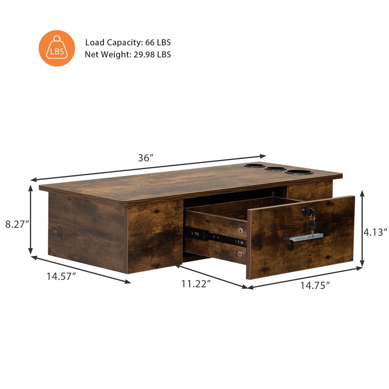 TREATLIFE HOME Classic Wall-Mounted Barber Salon Station with Locking Drawer, Rustic Brown Finish, Space-Saving Design, Efficient Storage Solution
