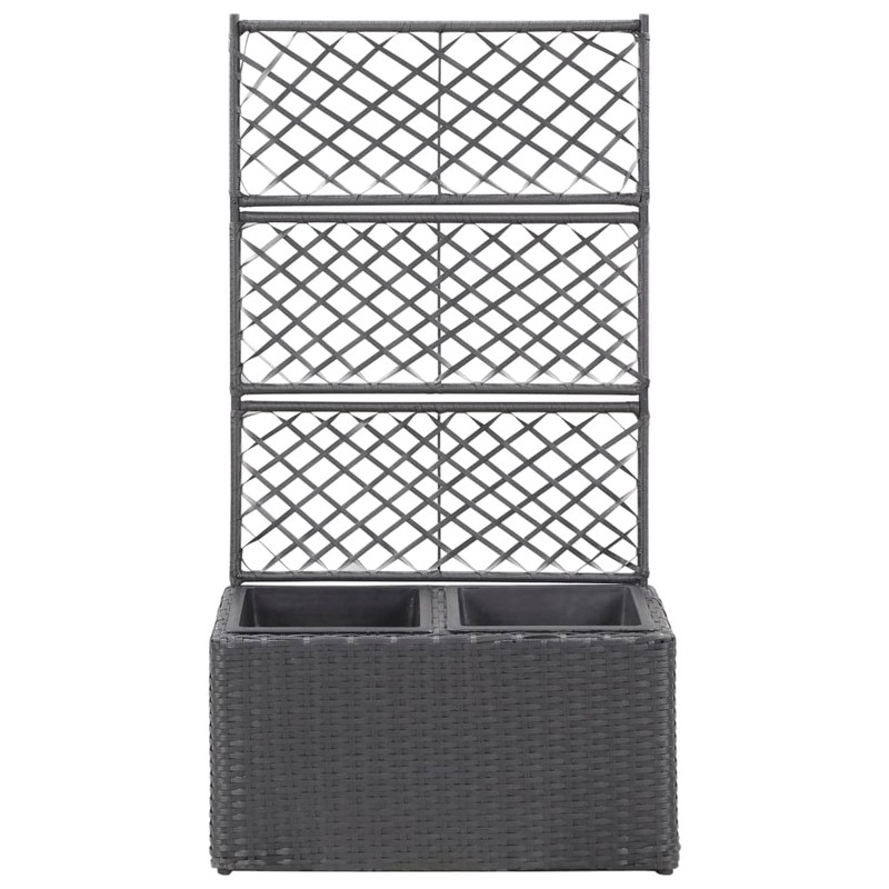 This trellis raised bed combines functionality with elegant design, featuring a stylish black rattan finish. Measuring 22.8 inches in length, 11.8 inches in width, and 42.1 inches in height, this planter is for adding greenery to your outdoor space. The addition of two removable pots enables versatility in planting while enhancing the overall decorative component of your garden.