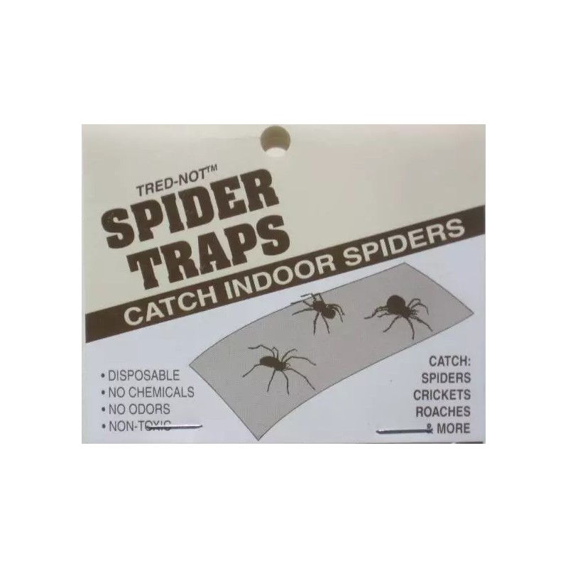Trednot Spider Traps are a 2.5" x 6" glue strip that trap Spiders inside the home. Spiders come out of their dark places and crawl around at night. Place along floor baseboards, behind furniture, along basement walls. Dispose of the strip when enough spiders become trapped. .