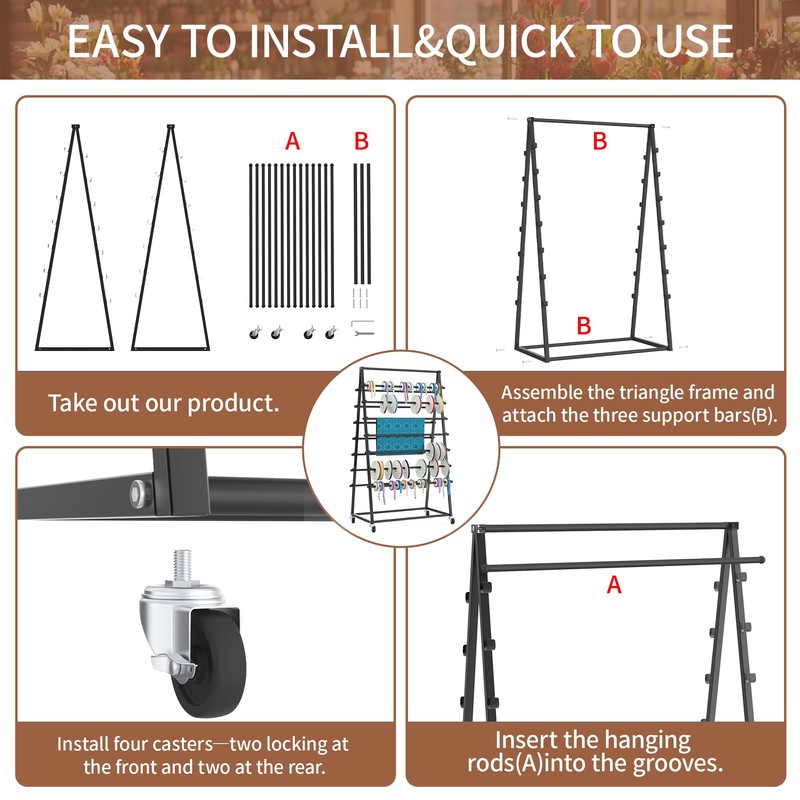 - Movable & Easy to Assemble - This movable ribbon organizer is easy to assemble, with no tools required. The lightweight design allows you to easily move it to different locations. Perfect for those who need a flexible and portable storage solution for their craft supplies or retail