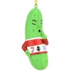 - Shh the pickle ornament is hiding. This funny take on the classic ornament tradition is wearing an ugly sweater and is doing his best to keep quiet.