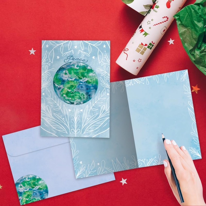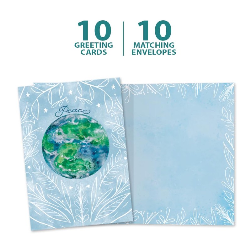Tree-Free Greetings Holiday 10 pack with matching envelopes,Eco Friendly,Made in USA,100% Recycled Paper, 5"x7", World Peace (HB54433)
