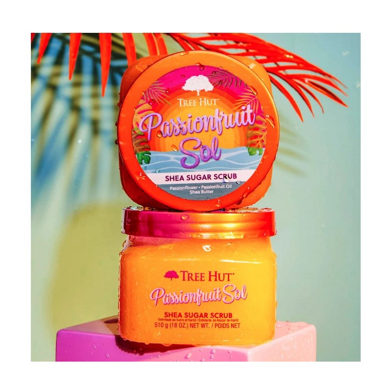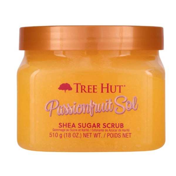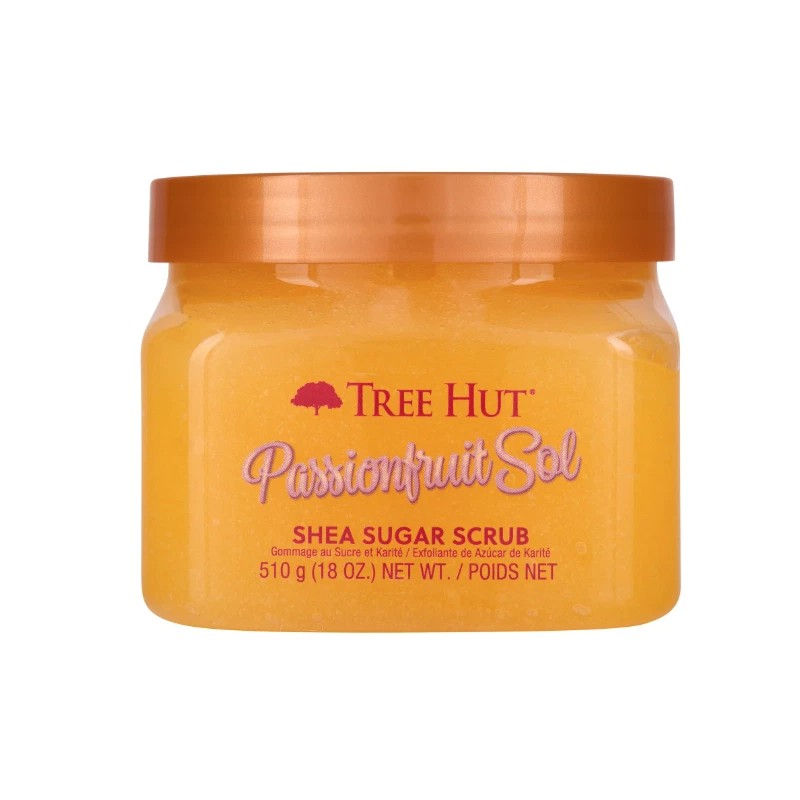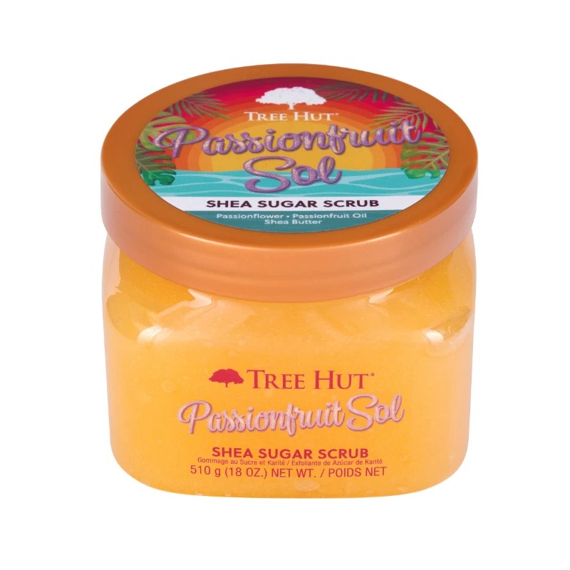 Reveal soft, radiant skin with Tree Hut Passionfruit Sol Shea Sugar Scrub. This 18 oz exfoliating body scrub is packed with natural sugar crystals, certified shea butter, and exotic passionfruit extracts to gently buff away dead skin, deeply hydrate, and leave your skin smooth and glowing.