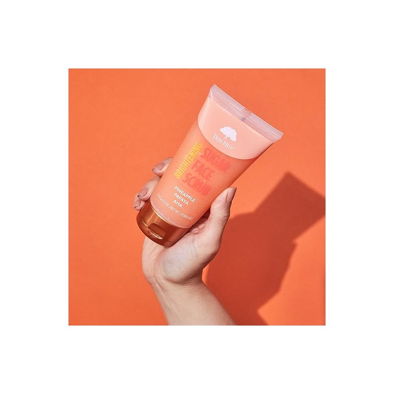 Delicioso exfoliante facial hecho con azúcar, piña y papaya, perfecto para limpiar el rostro profundamente. En Tree Hut ofrecemos productos de la más alta calidad para el cuidado de la piel con el objetivo de mejorar y enriquecer tu rutina de baño. Creemos que todos merecemos sentirnos bien de pies a cabeza, por eso ofrecemos productos de belleza para que puedas tener un momento especial y relajante. Nuestros productos están elaborados sin parabenos ni sulfatos, con fórmulas hidratantes e ingredientes de origen vegetal, así como deliciosos aromas de alta duración. Ama y cuida tu piel con nuestra colección de exfoliantes faciales que hidratan y nutren profundamente.