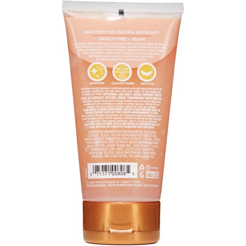 TREE HUT, Pineapple and Papaya Face Scrub, Exfoliante Facial Iluminador de Azúcar Natural, con Piña y Papaya, con Alfa Hidroxiácidos, Fórmula Vegana, 210 g