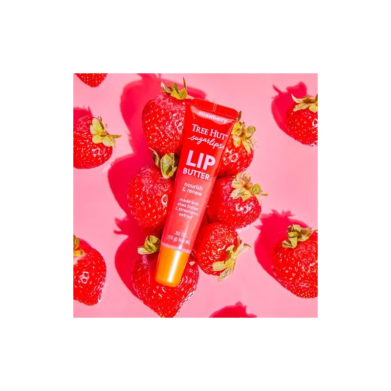 Tree Hut Sugarlips Lip Butter is made with shea butter and strawberry extract to instantly lock in moisture for pillow-soft lips. This non-sticky formula is scented with notes of juicy strawberry and made with ingredients that work together to nourish and soothe dry, chapped lips. Tree Hut Sugarlips Lip Butters are formaldehyde-free, gluten-free, paraben-free, and sulfate-free.