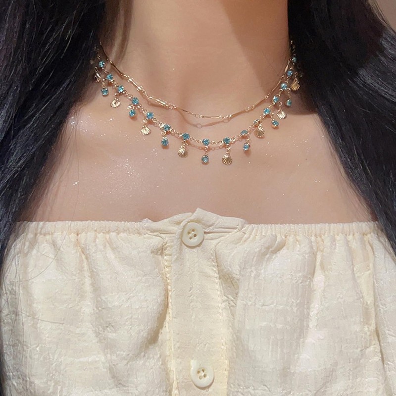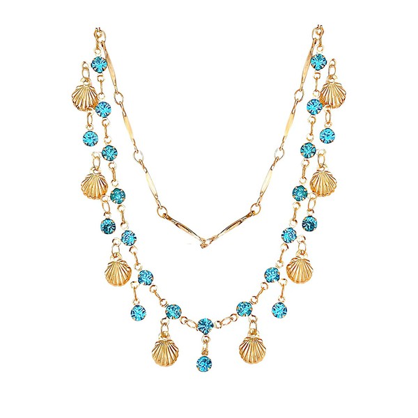 TREE NEST Collar Colgante de Conchas, Collar Zirconia Shell Doble Capas,Cadena de Clavícula,Collares de Joyería para Mujeres, Regalos de Joyería de Boda de Aniversario 20181