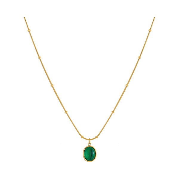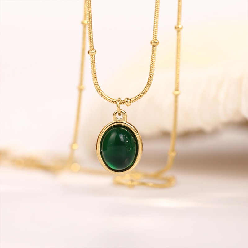 • ❥MATERIAL DEL COLLAR DE MODA - Hecho de acero inoxidable de alta calidad con ópalo verde creado, chapado en oro real de 18k, sin plomo, sin níquel e hipoalergénico, no daña la piel sensible.