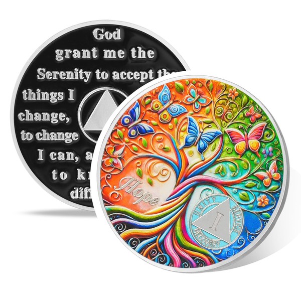 - Symbol of Hope & Transformation: The Hopeful Tree Sobriety Coin features a detailed tree with colorful branches and fluttering butterflies, symbolizing personal growth, resilience, and transformation. The tree’s strong roots and expansive branches represent the recovery journey, while the butterflies signify freedom and renewal. This coin serves as a daily reminder of strength and hope, making it the perfect sobriety gift for anyone on their recovery path