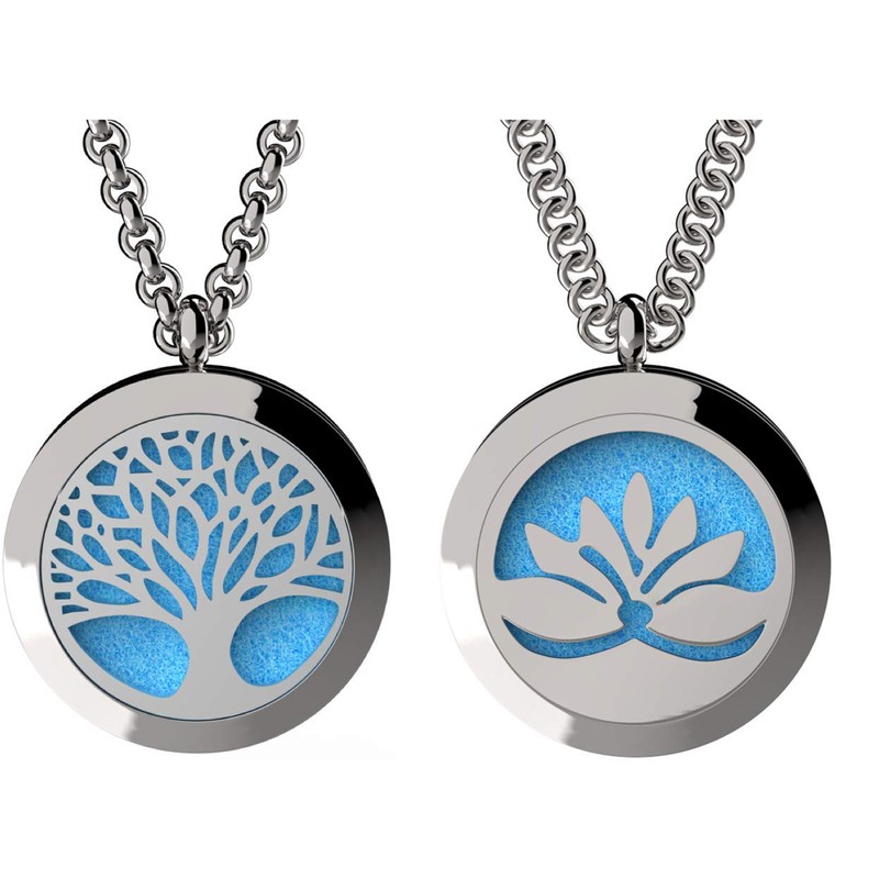 - Tree Of Life and Open Lotus Essential Oil Diffuser Necklace Stainless Steel Locket Pendants with 24" Chains + 12 Refill Pads …