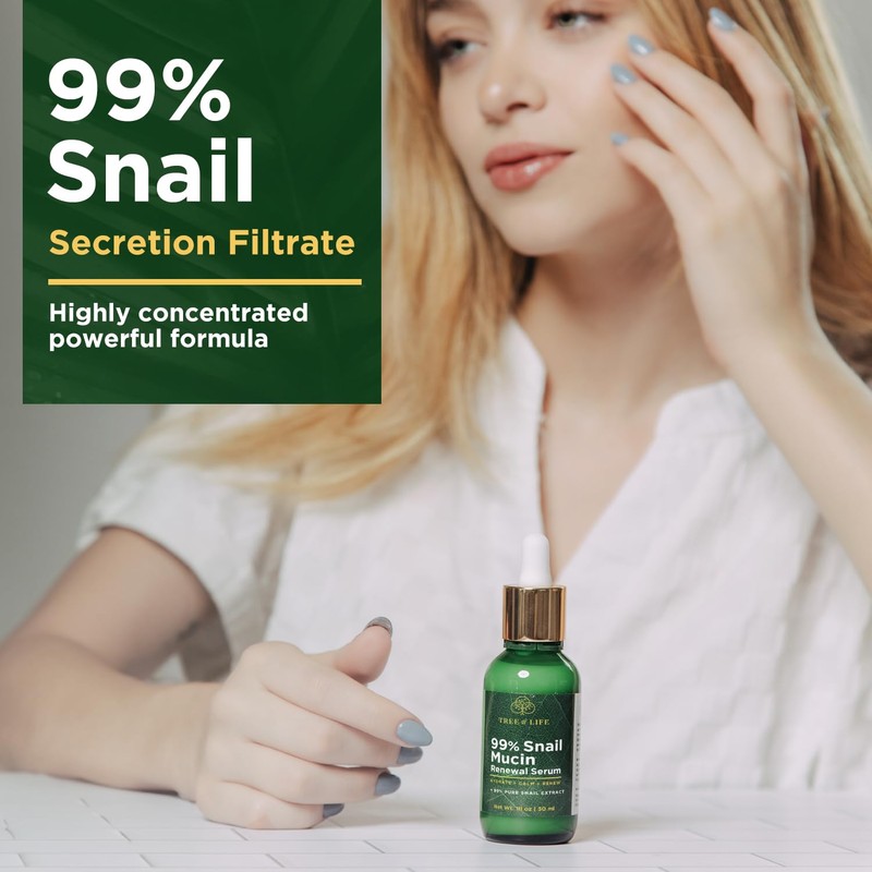 Tree of Life Beauty 99% Snail Mucin Serum - Hydrating Serum for Face with Aloe Vera and Cucumber - Snail Pore Minimizer for Face - Highly Concentrated Skin Care for Women 1 Fl Oz