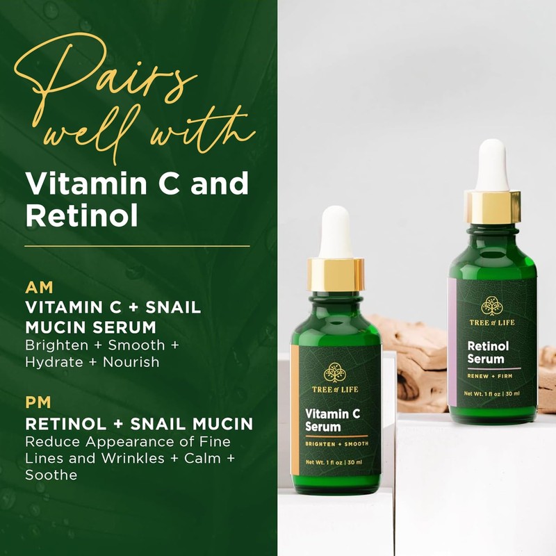 Tree of Life Beauty 99% Snail Mucin Serum - Hydrating Serum for Face with Alo...