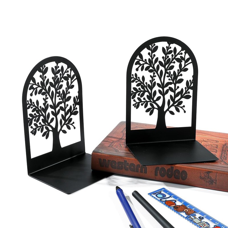 Introducing the captivating Tree of Life Book Ends, an exquisite piece of art that doubles as a functional book stand for your desk shelf or home office. Crafted with meticulous attention to detail, this black tree decorative bookend is a stunning addition to any room, exuding an air of sophistication and style. Made from high-quality, heavy-duty metal, the Tree of Life Book Ends are designed to securely hold your books in place, preventing them from slipping or falling over. The non-skid base ensures that your books remain stable, even on uneven surfaces. This feature-rich bookend is not just a practical solution for organizing your books, but also a charming piece of home office supplies that adds a touch of elegance to your workspace. The Tree of Life design is a timeless symbol that represents growth, continuity, and the interconnection of all living things. It serves as a beautiful metaphor for the power of knowledge, with books representing the seeds from which great ideas and insights grow. This artistic bookend is sure to be a conversation starter in your home or office, impressing your guests with its unique aesthetic and thoughtful design. The Tree of Life Book Ends are available in a sleek black finish that complements a variety of decor, from modern minimalist to classic traditional. Its versatile design makes it a perfect gift for book lovers, bibliophiles, and anyone who appreciates the beauty of fine craftsmanship. Embrace the harmony of nature and knowledge with the Tree of Life Book Ends. Elevate your home office decor and keep your books in pristine condition with this stunning and functional piece. Order yours today and let the Tree of Life Book Ends adorn your shelf with grace and style
