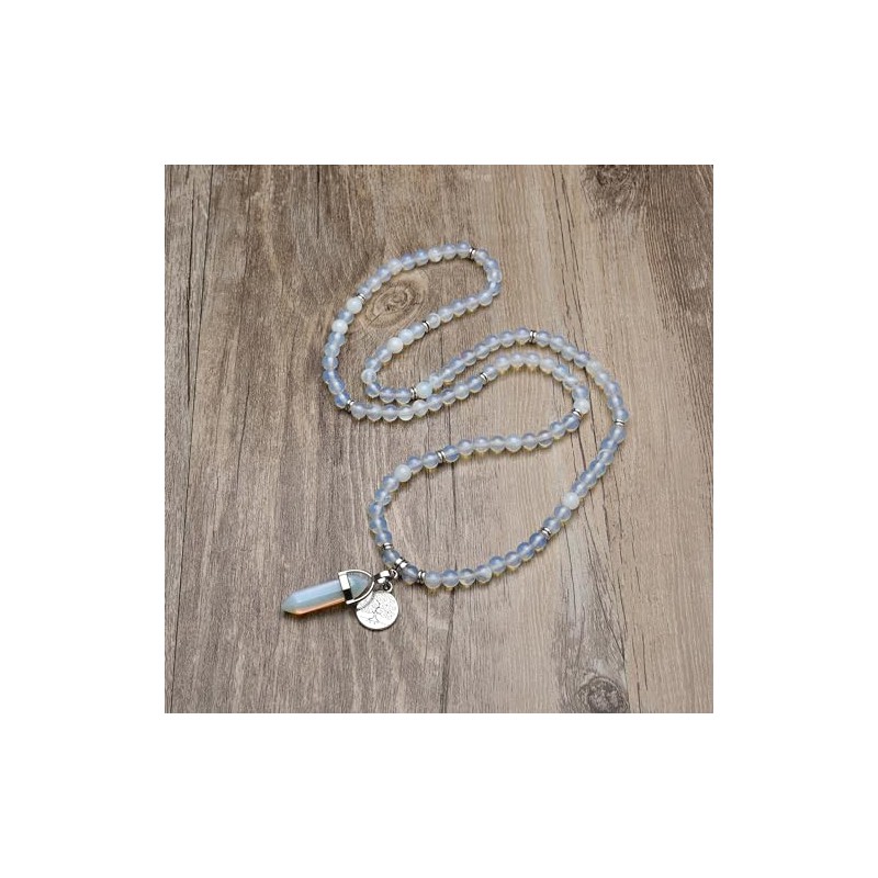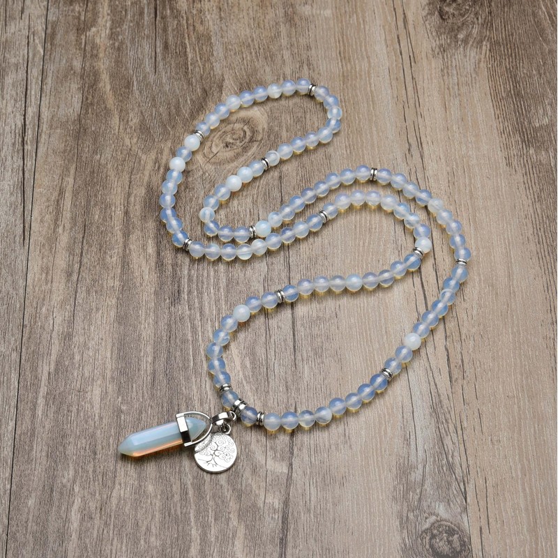 Tree of Life Charm, 108 Natural Mala Beads Bracelet Spiritual Necklace with Reiki Quartz Hexagonal Prism Pendant, Stone, No Gemstone