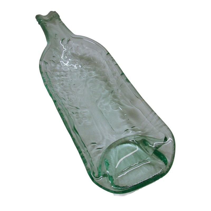 Tree of Life Embossed Serving Dish Cheese Tray UpCycled Green Tint Wine Bottle